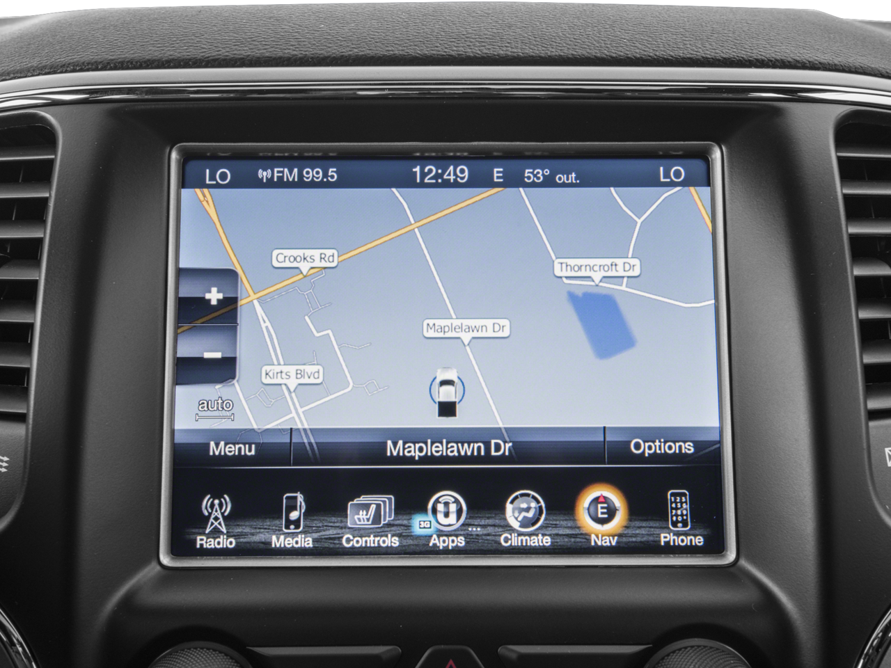 - Uconnect 3C navigation system with an 8.4-inch touchscreen display, integrated voice command, and Bluetooth® connectivity